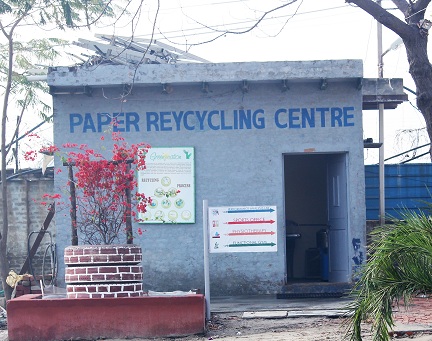 The school campus is a host to paper recycling unit where the students are involved in paper recycling activities which not only enables to save trees and minimize pollution, but also reduces the waste problems by utilizing waste materials like used paper, cotton rags and unwanted biomass. The mini paper recycling plant is an appropriate system to turn waste paper into paper that can be and is used for all purposes.